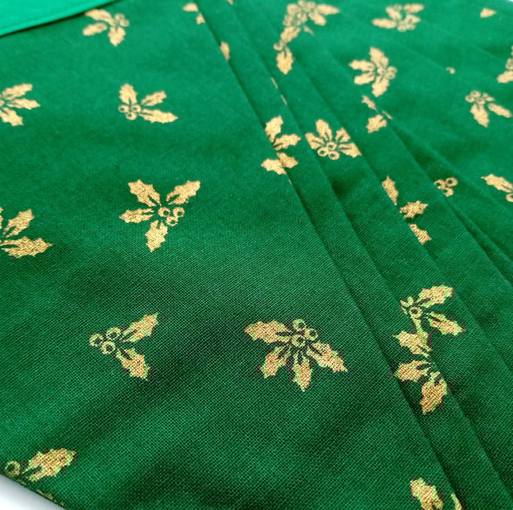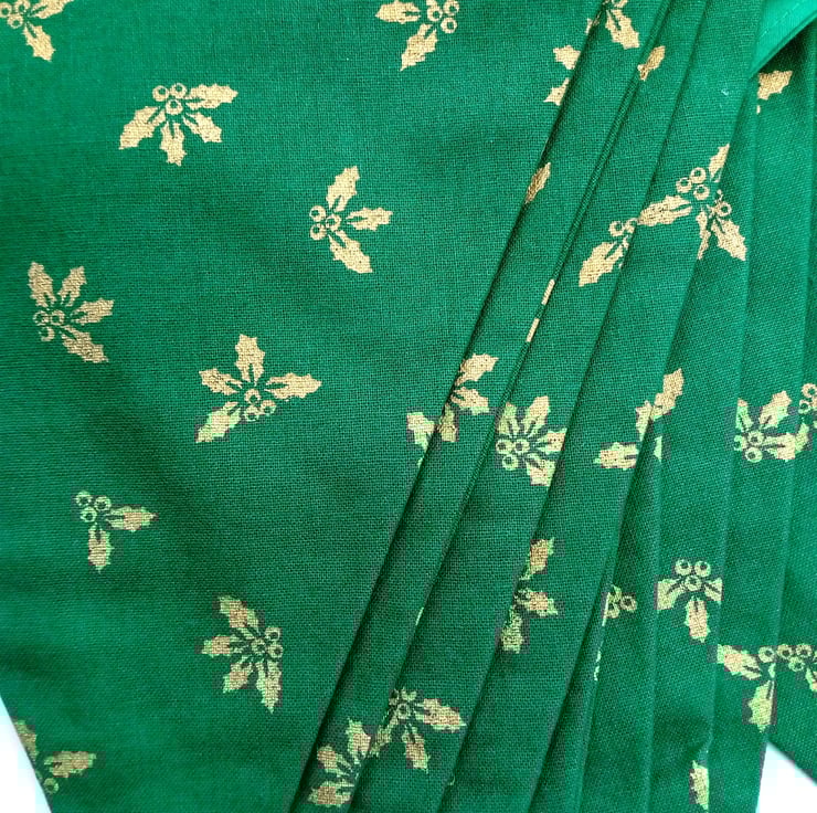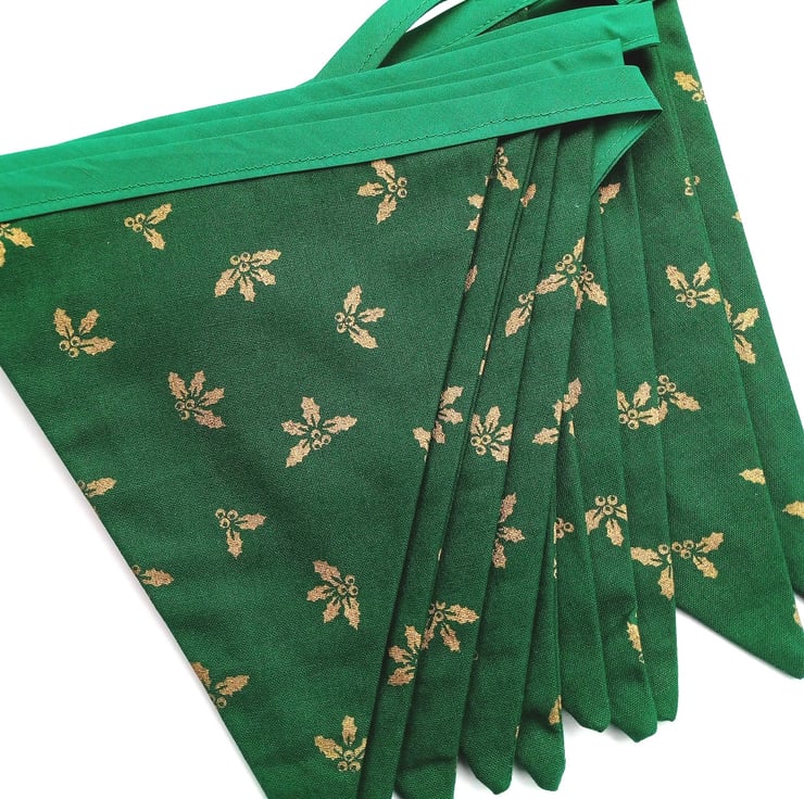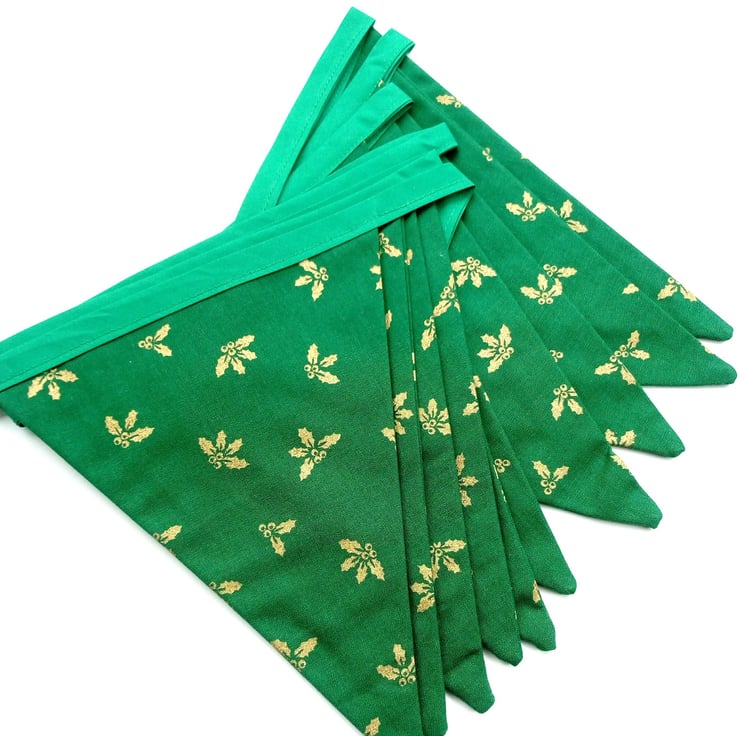 This Christmas bunting in forest green fabric features gold holly sprigs to add that little touch of festive sparkle.