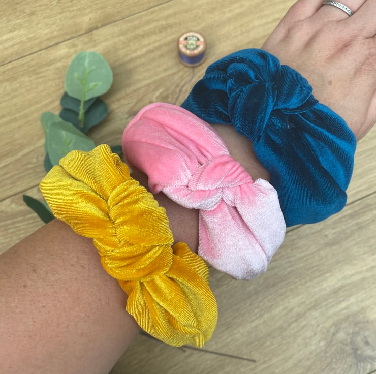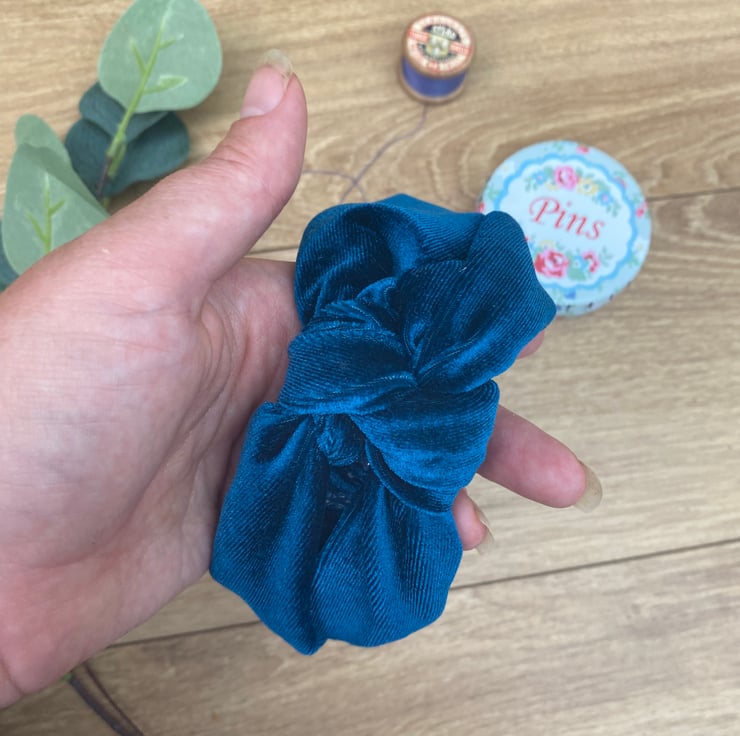 Top knot Headband, in gorgeous Blue Velvet fabric.