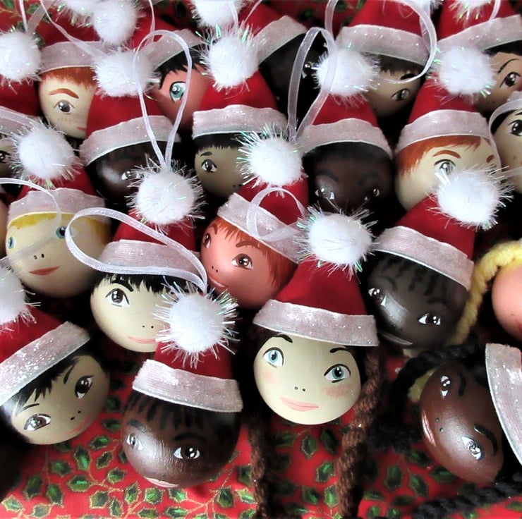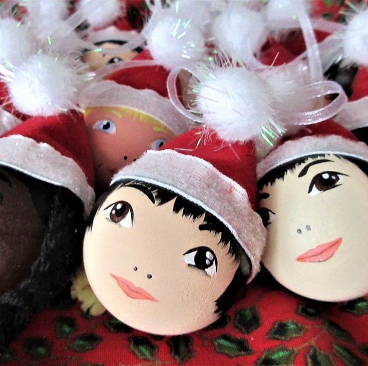 I have been making animal baubles for many years, and decided it was time to introduce a few human baubles.