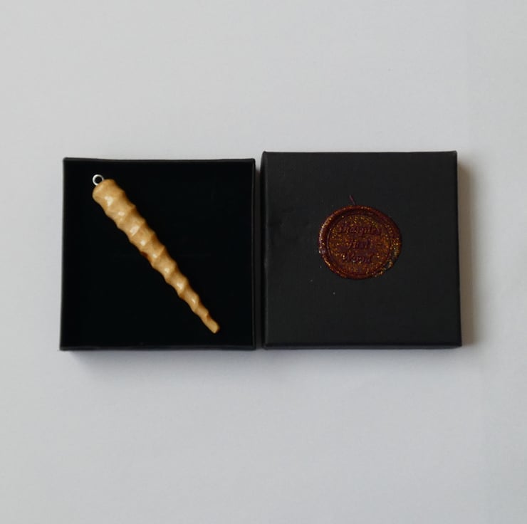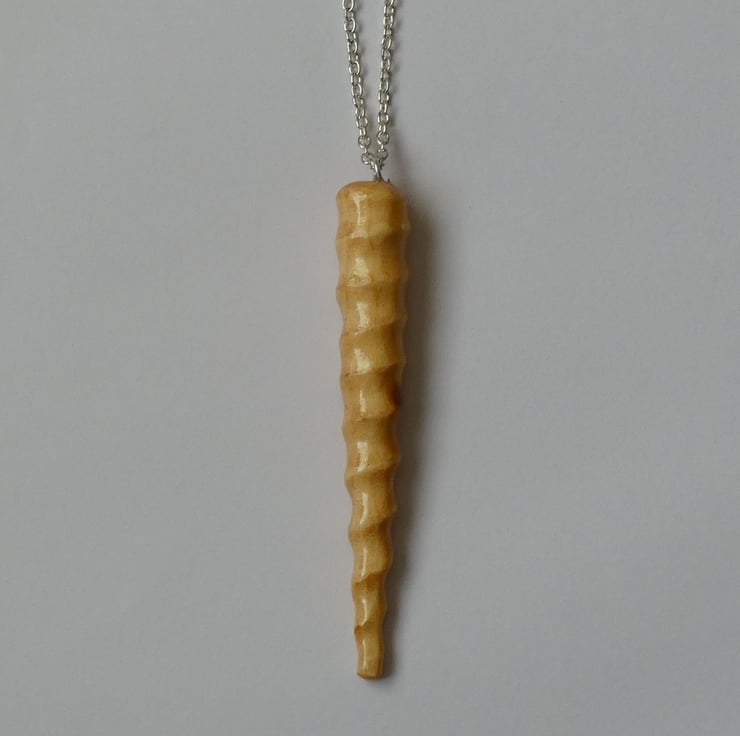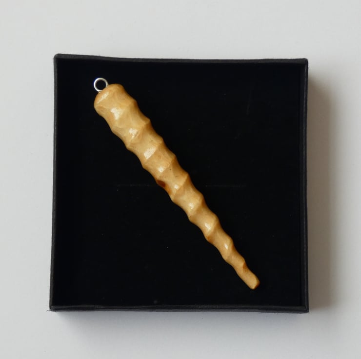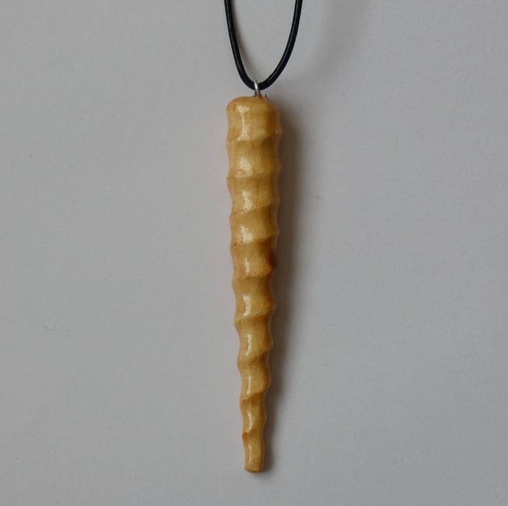 This unusual wooden unicorn horn style pendant necklace is a one of a kind piece of jewellery. Handcrafted from a section of Pine wood, it has been upcycled from reclaimed wood. A perfect present for an anniversary, birthday, Easter, or as a gift for mum.