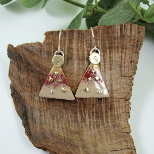 Christmas Earrings. Sterling silver and copper with Red & Gold enamel