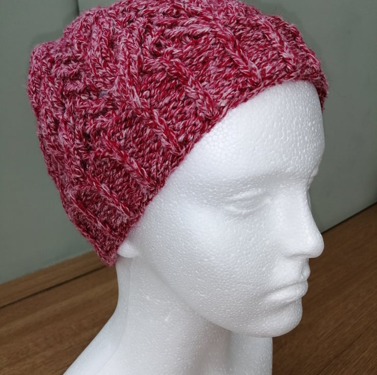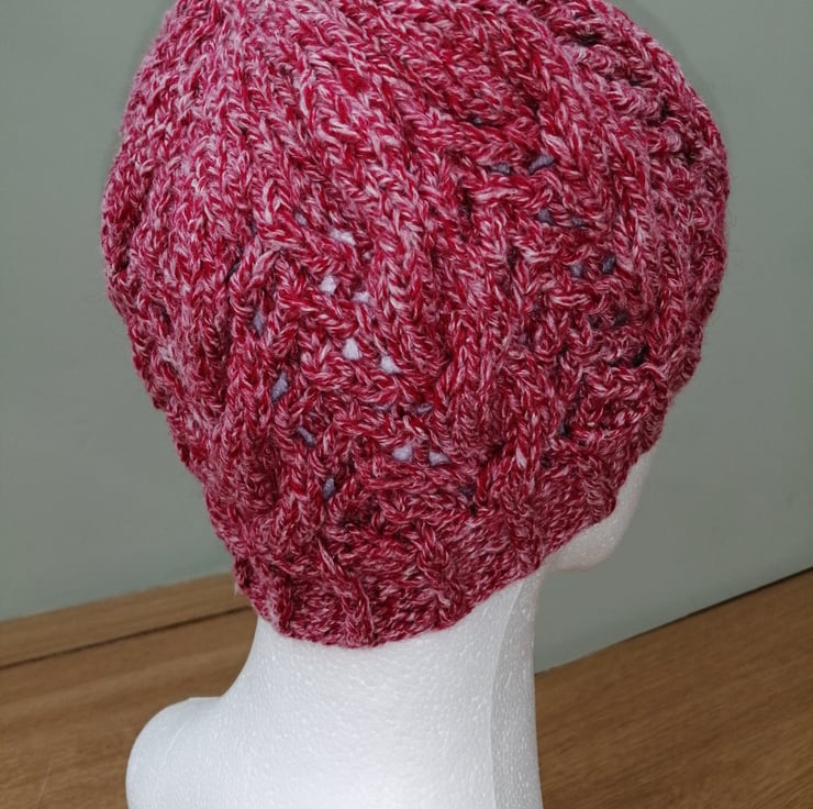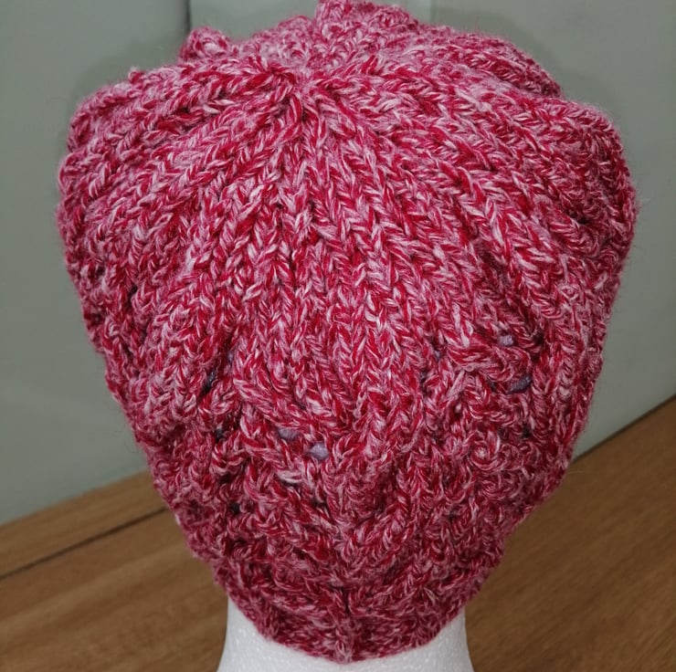 Lovely pull on hand knitted beanie hat.