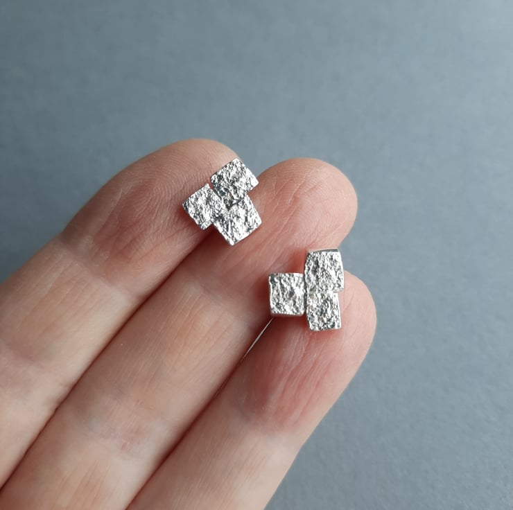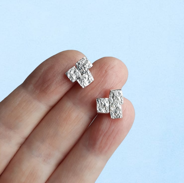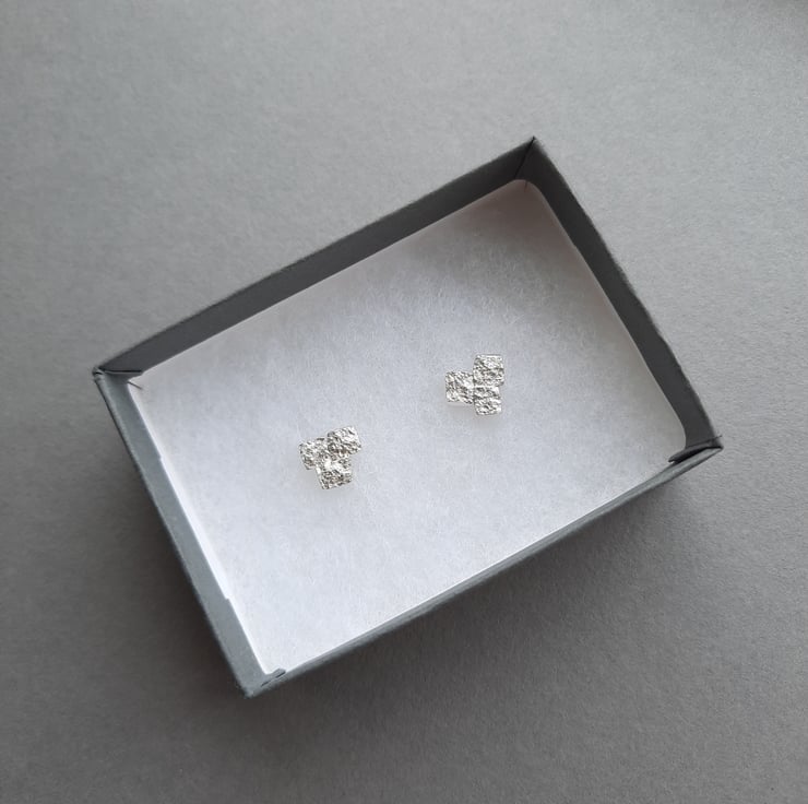 Made from recycled silver, these hand-textured sparkly little silver rock studs are perfect for the festive season!