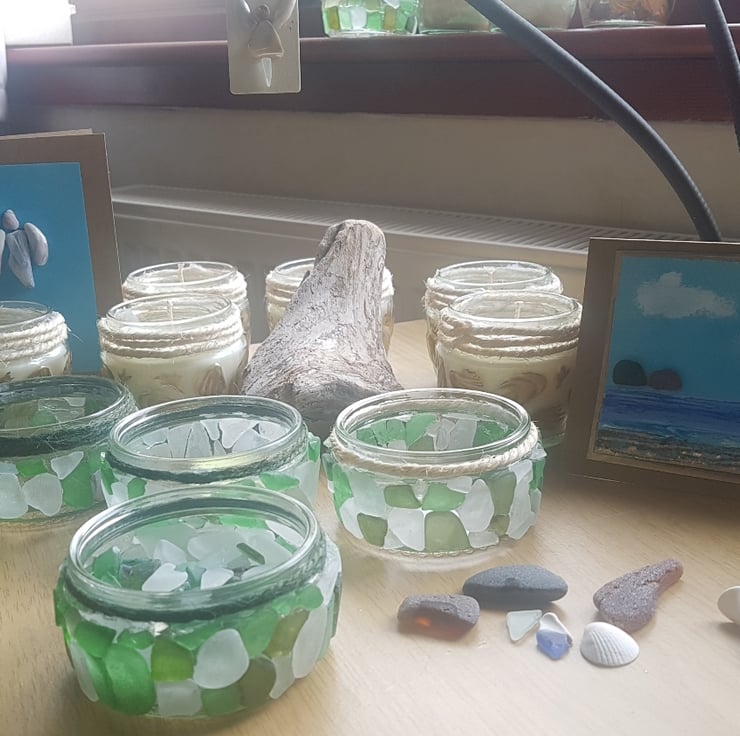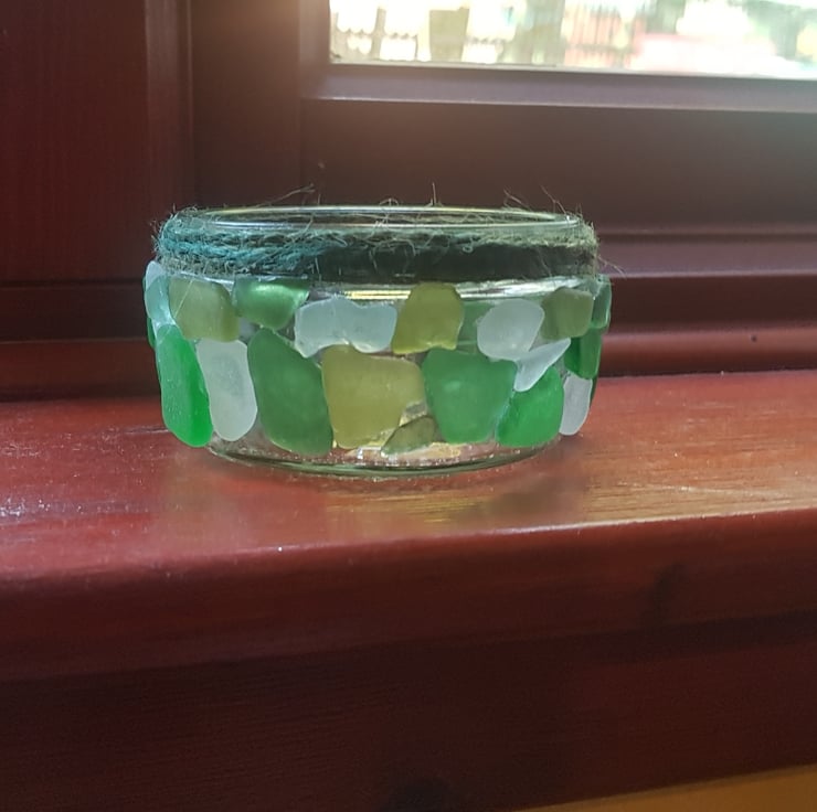 Handcrafted tealight holder made with seaglass from Rosemarkie fortrose and nairn beaches in the highlands.