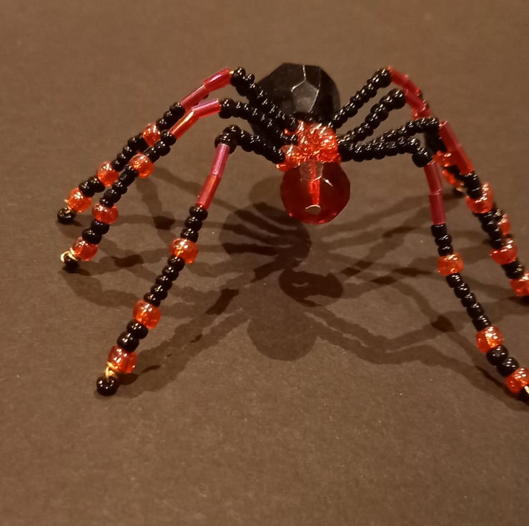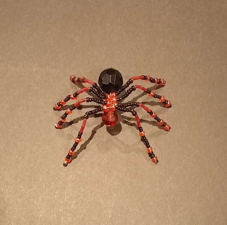 I use wire and various glass beads to make this spider, height 3cm width 7cm