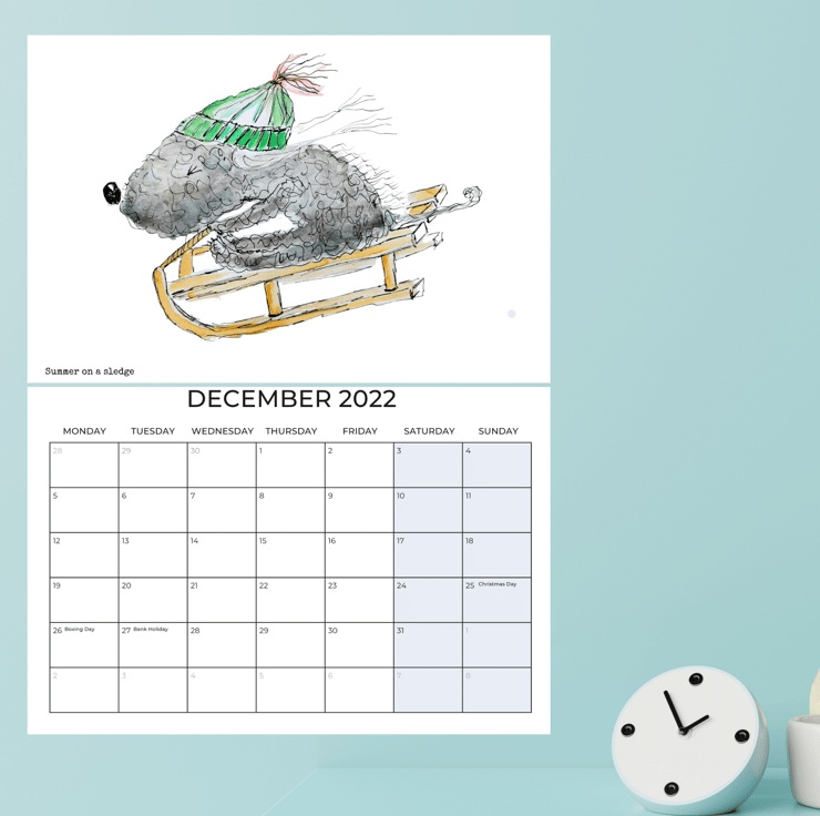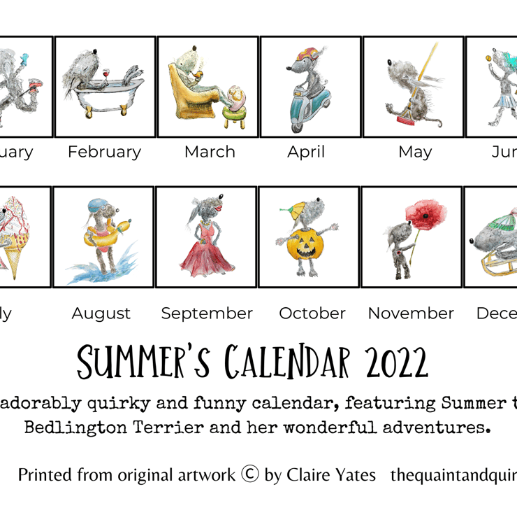 A 2022 calendar featuring Summer the Bedlington Terrier dog, and her wonderful adventures.