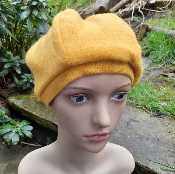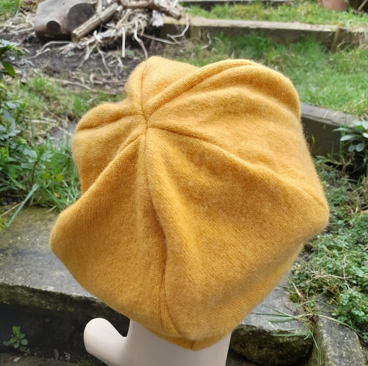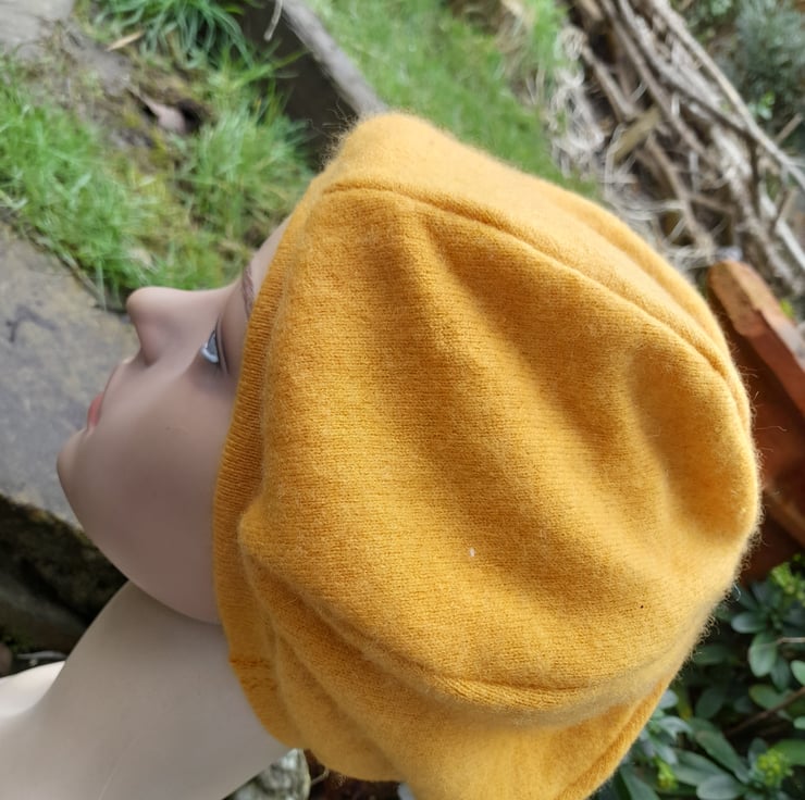 Fanny has made two of these mustard gold cashmere hats and lined them both with cosy polar fleece.