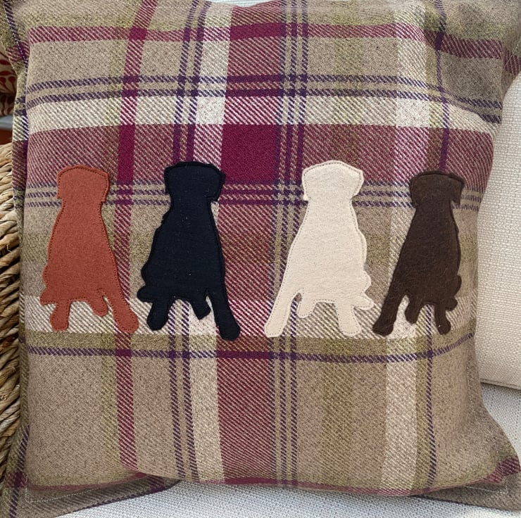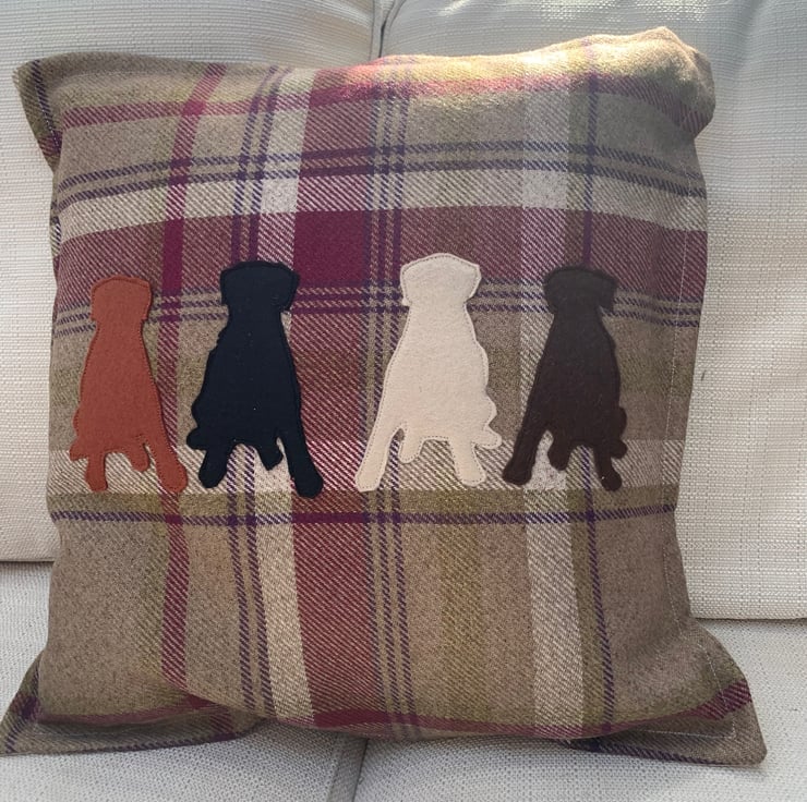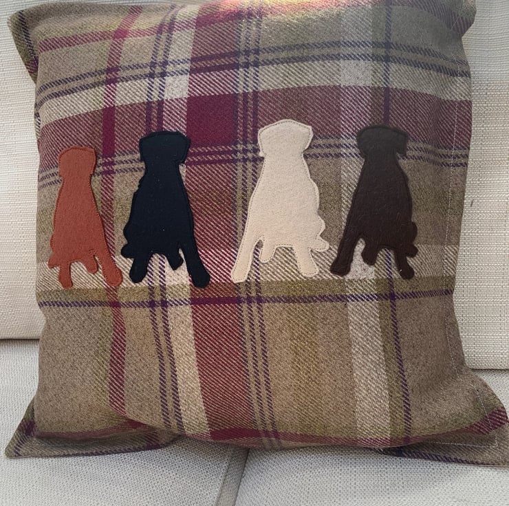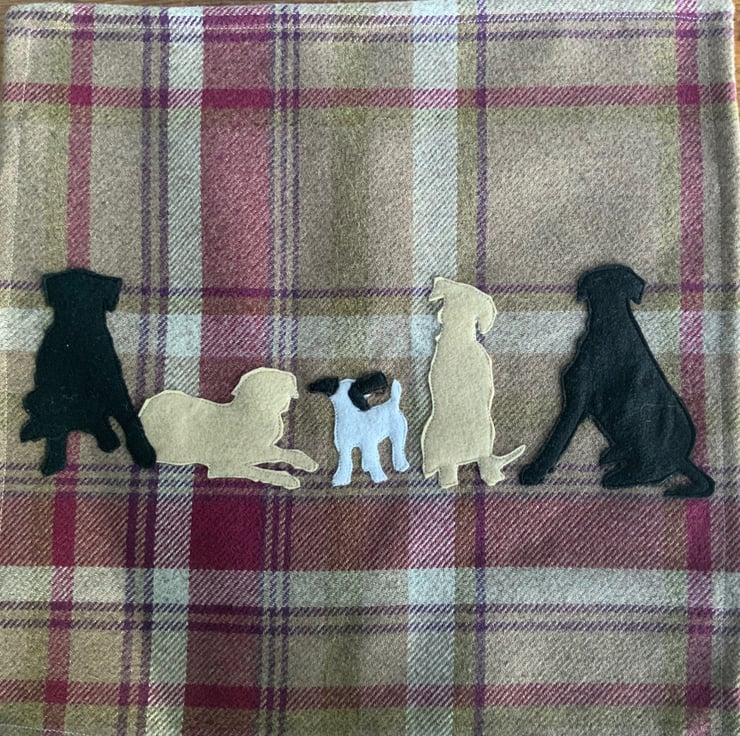 Balmoral Heather Cushion cover. To fit 18” infill. Up to five dogs on the cover. Your choice of breeds.