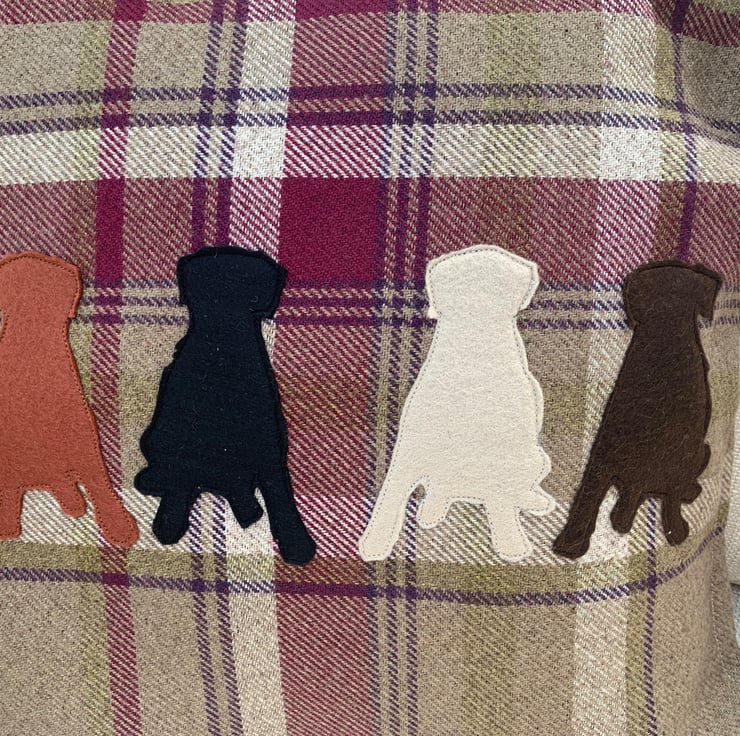 All dogs drawn, cut out and sewn individually. Can add cats or horses if you would like.