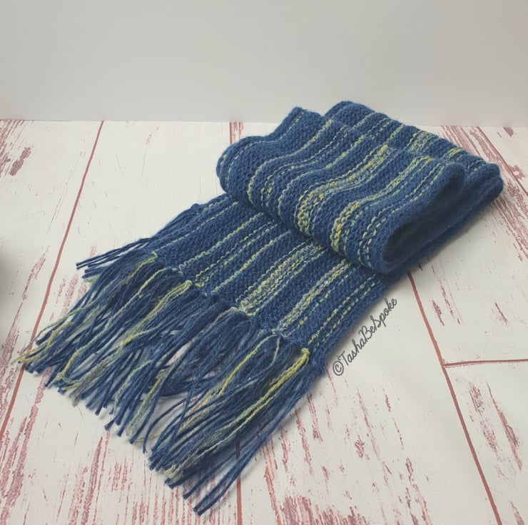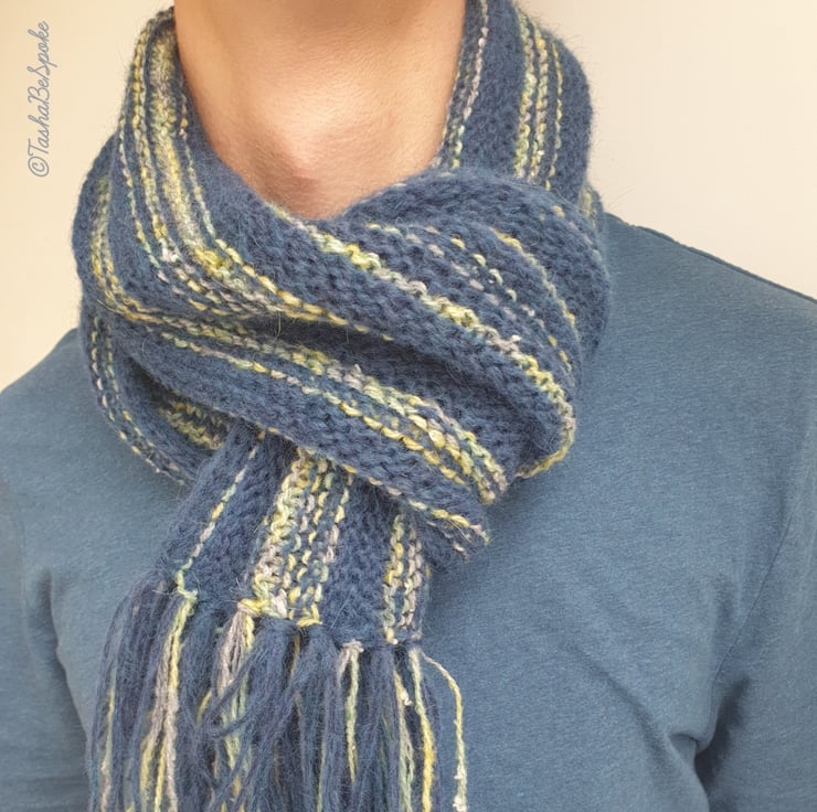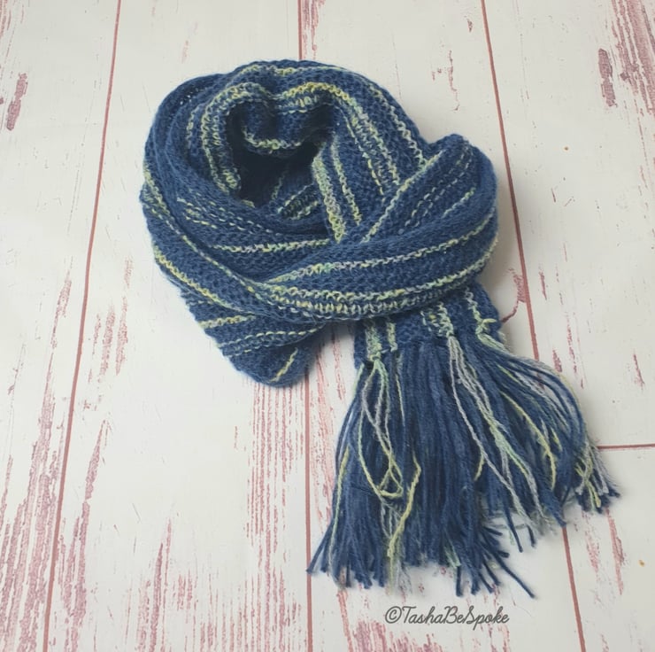 Hand knitted scarf from beautiful mix of yarn (lambs wool, mohair, alpaca and acrylic yarn). Created for men, but can be used also as unisex item.