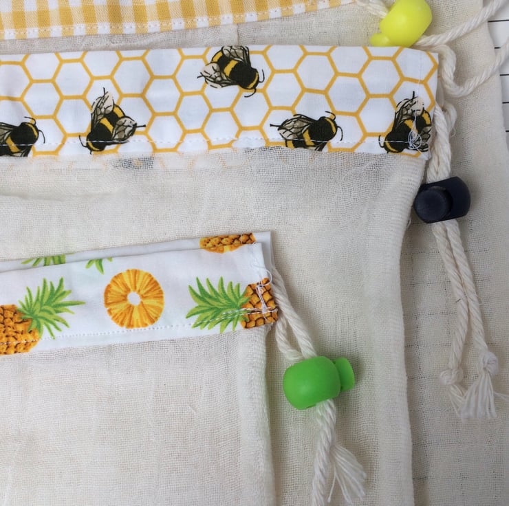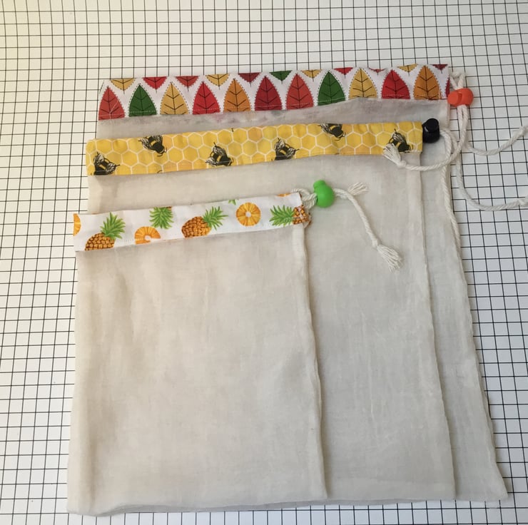 These lovely bags are the perfect way to reduce your use of plastic in the supermarket and your fridge. The set includes three different sized drawstring bags, made from cheesecloth and cotton. Use them when buying fruit and veg in the supermarket or greengrocers. The cotton fabric allows produce to breathe and not sweat and so is ideal for storage in the fridge too. The simple drawstring design with a coloured cord-lock will keep your purchases safe.