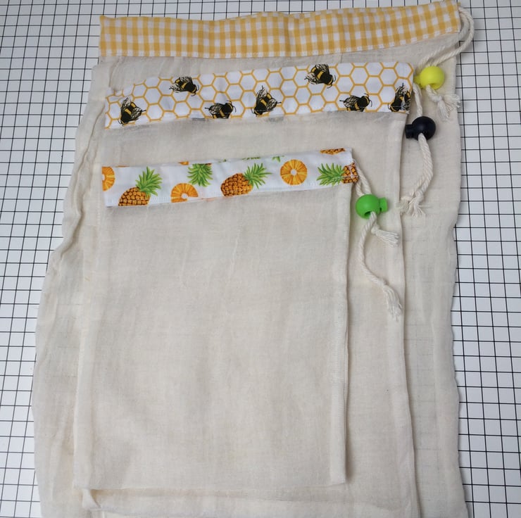 I was asked to make a set of fruit and veg bags. It was fun working out how to make them well and look prettier than anyone else’s bag!