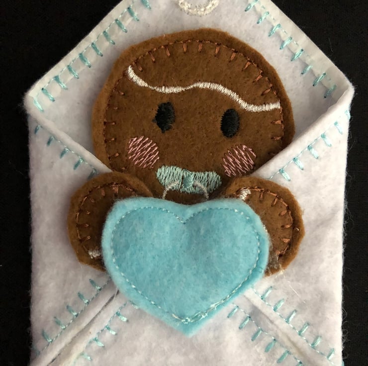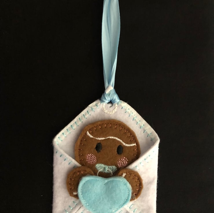 This listing is for 1 blue ginger bread decoration. He is made from felt with a ribbon hanger. Also available in yellow and pink