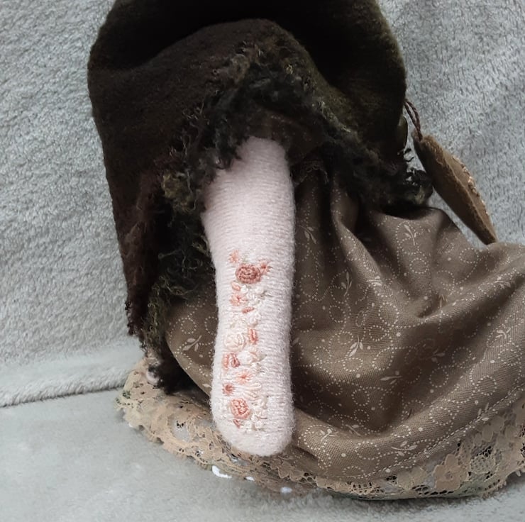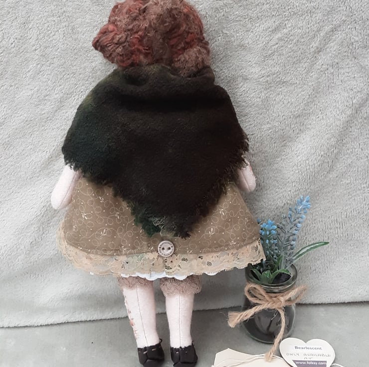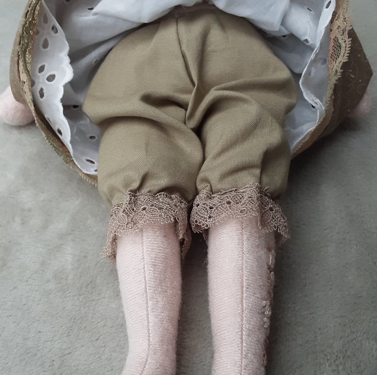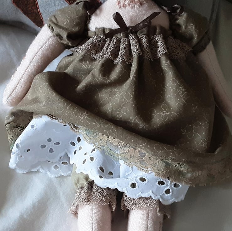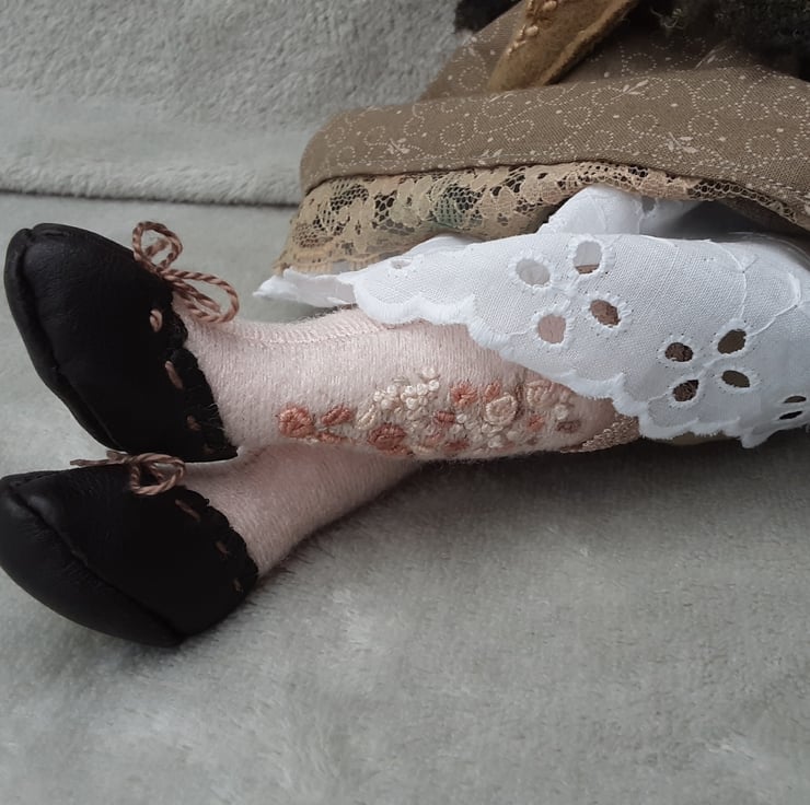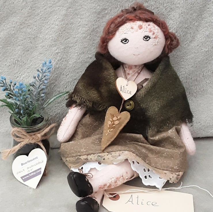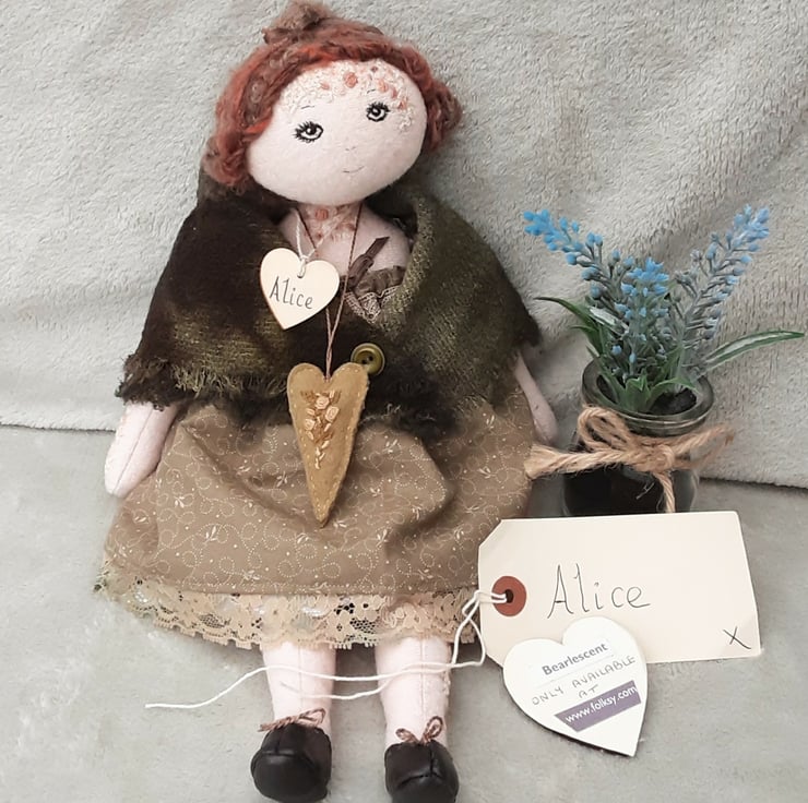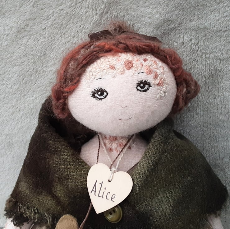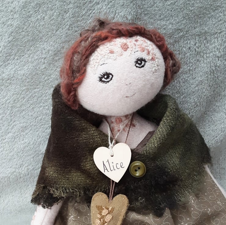 Alice is one of my new heritage styled dolls with hand embroidery to one leg, arm, neck and face in soft terracottas and naturals.