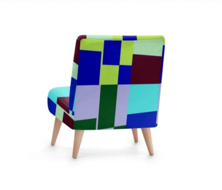 THE CHAIR IS A NATURAL TRANSITION FROM THE PAINTING.THE DESIGN WAS ORIGINALLY AN ACRYLIC ON CANVAS PAINTING.I HAVE TRSNSFERRED THE IMAGE ONTO THE VELOUR FABRIC AND CREATED A BEAUTIFUL OCCASIONAL CHAIR WHICH HAS BEEN RESPONSIBLY SOURCED FROM BEECH WOOD,