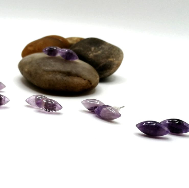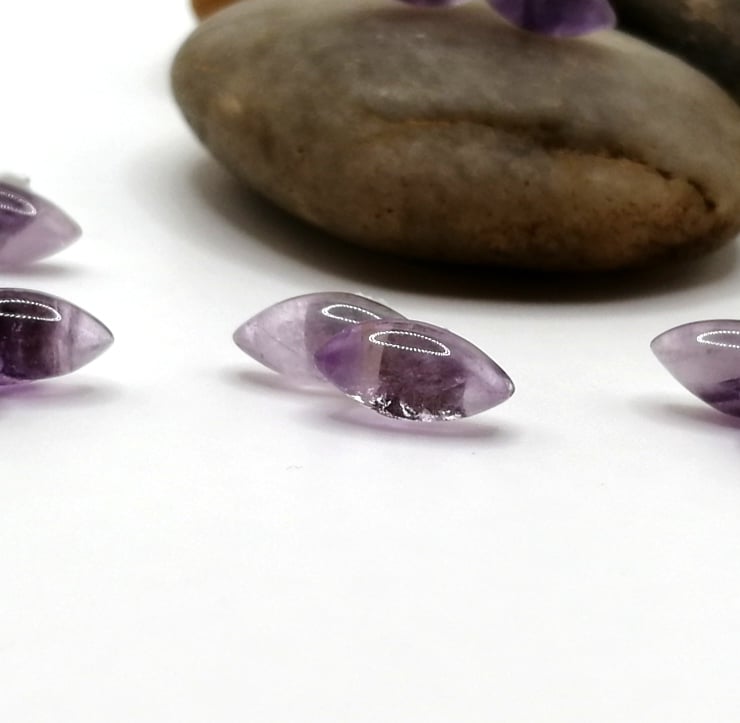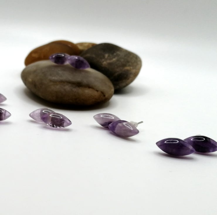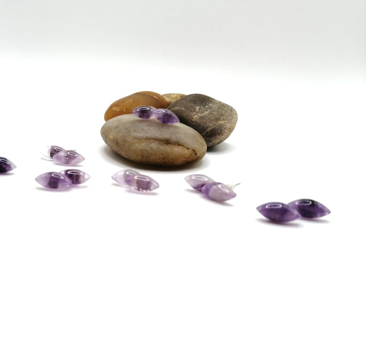 These pretty little amethyst earrings are perfect for everyday wear. Each pair is unique. I will send one pair at random from the picture. If you would prefer a darker or lighter shade please leave me a message. If I do not receive a message I will send 1 PAIR AT RANDOM.