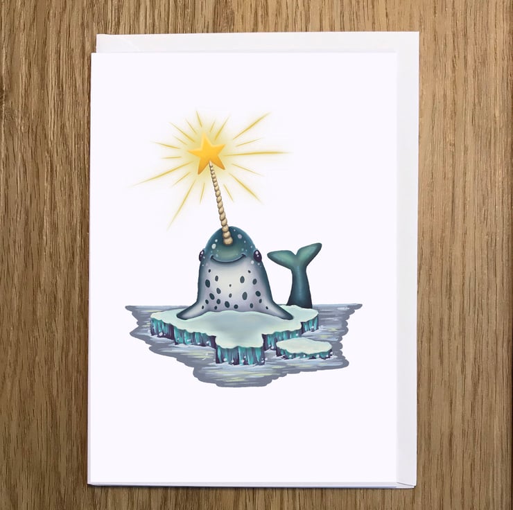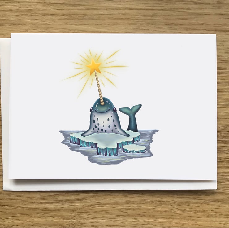 A Narwhal blank greeting card with white envelope by DuffleCat Prints (Damian Case)