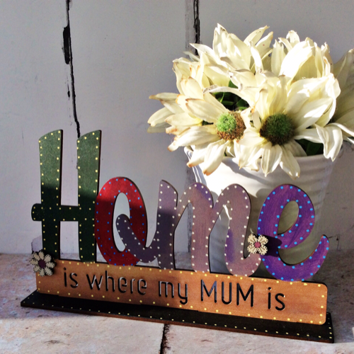 Mum love painted wood sign ‘ Home is where my mum is ‘ hand painted free standing sign