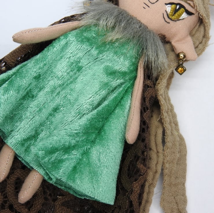 Being a maker who's always inspired by nature I feel it's important to waste as little as possible. So the hair, clothes and accessories of these dolls are made using upcycled and pre loved materials.