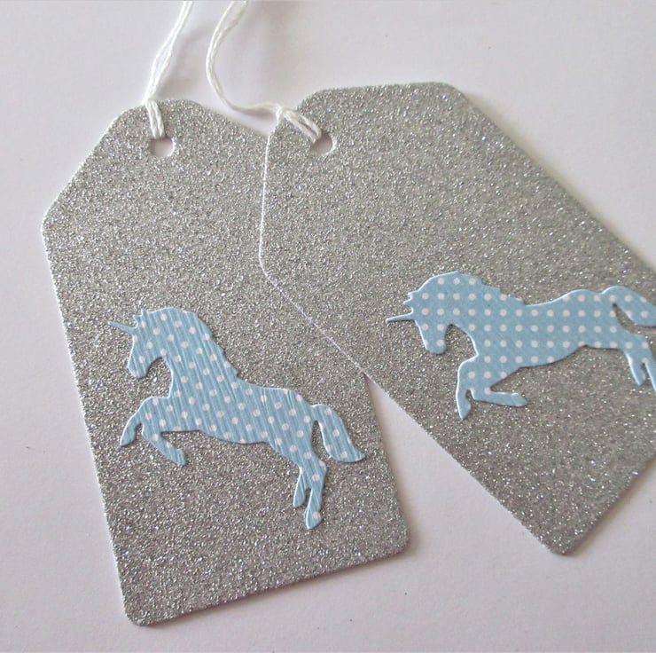 Unicorn Gift Tag x 2 Christmas Present Birthday Gift Label Silver Blue