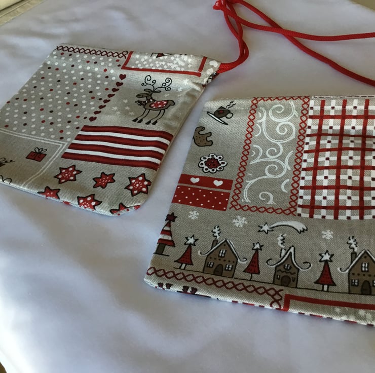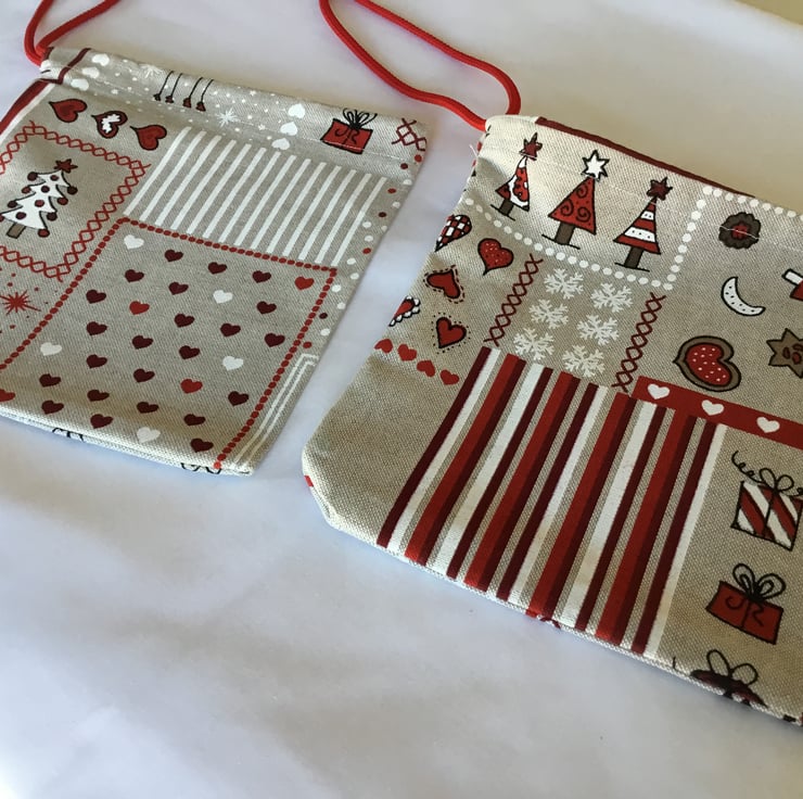 These measure approximately 20.5 x 19 cm and have a red rope tie.
