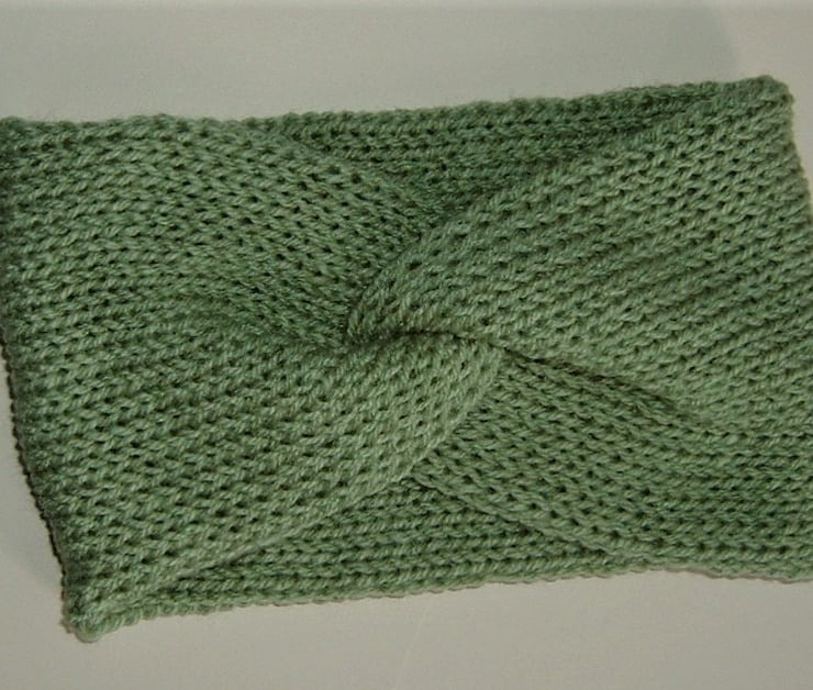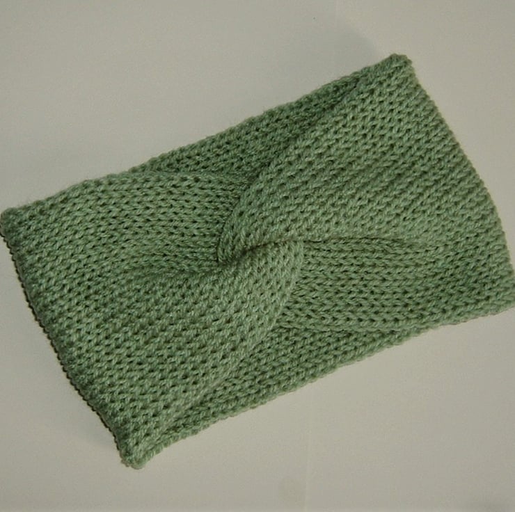 These lovely cosy ear warmers have been knitted in a pretty Lovatt green acrylic yarn.
