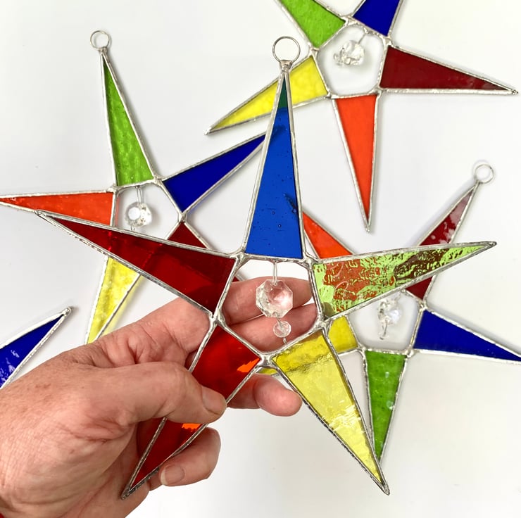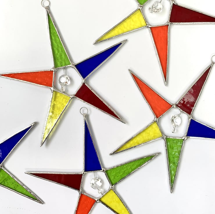 I have 5 stars all using the same glass but some in a different order of colours which I’ve listed below. I will send you one of these and note when sold but if you have a preference please let me know.