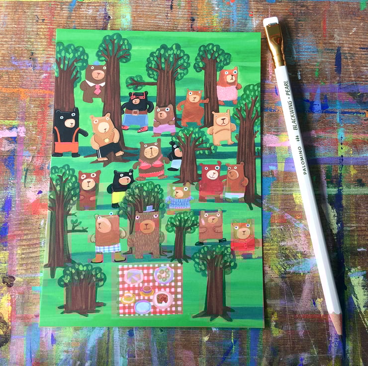 1 digital art print 5 x 7inches on velvety matte card- my most popular design Bears In The Wood (what are they up to?)