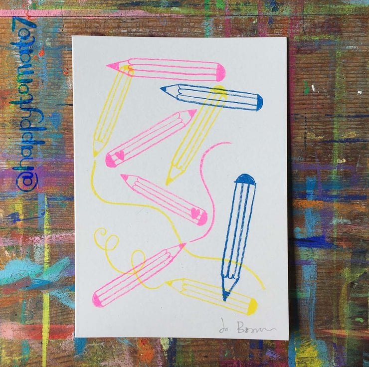 1 Riso print postcard A6 signed - pencils design