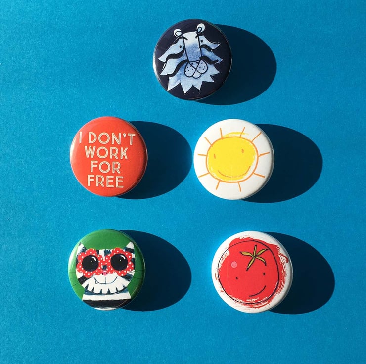 1 button badge 38mm with pin fastening -designs vary subject to availability- if you have a preference please note in comments or I will select.