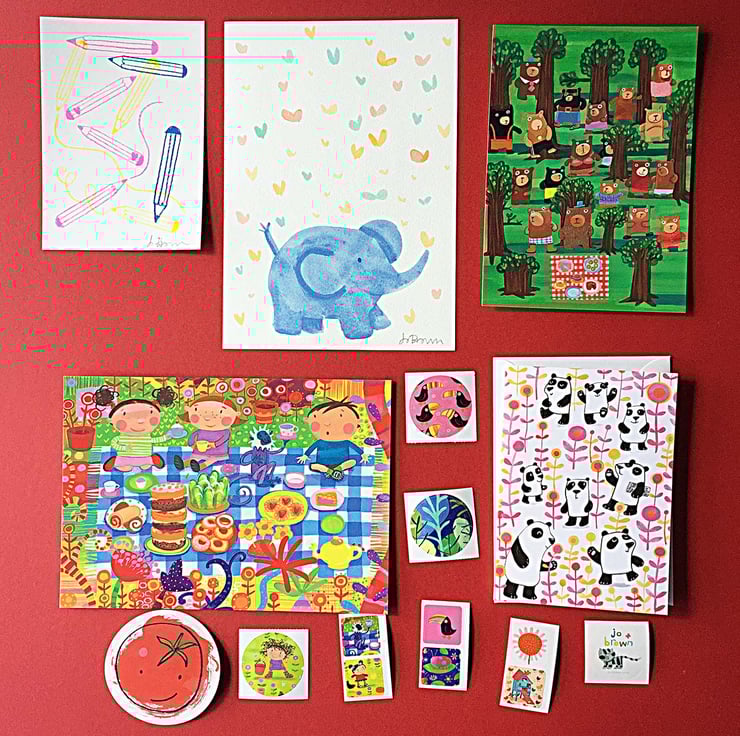 Inside the box you will find a wrapped selection of unframed illustrations by Jo Brown in different media.