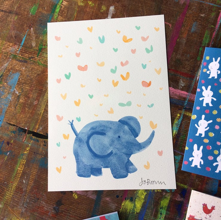 1 A5 watercolour digital print signed Baby Elephant with butterflies