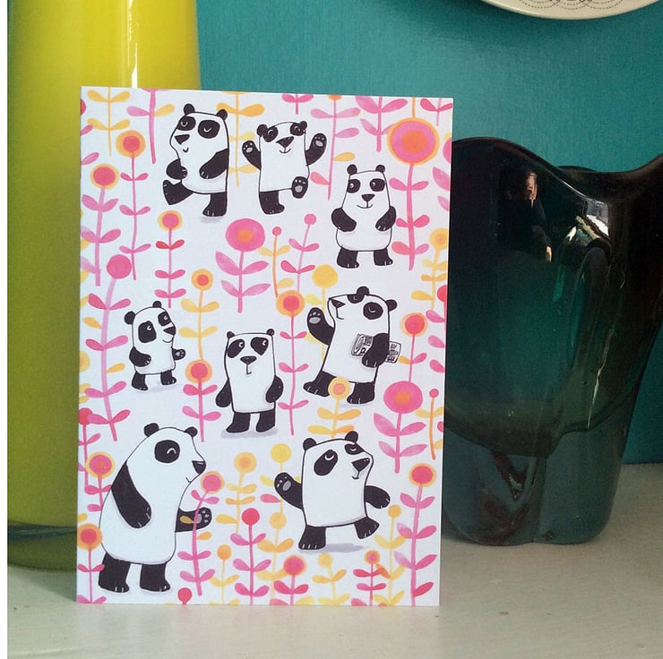 1 greetings card A6 size with Jo Brown logo sticker to seal Panda Garden