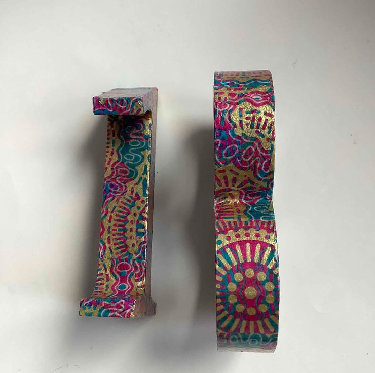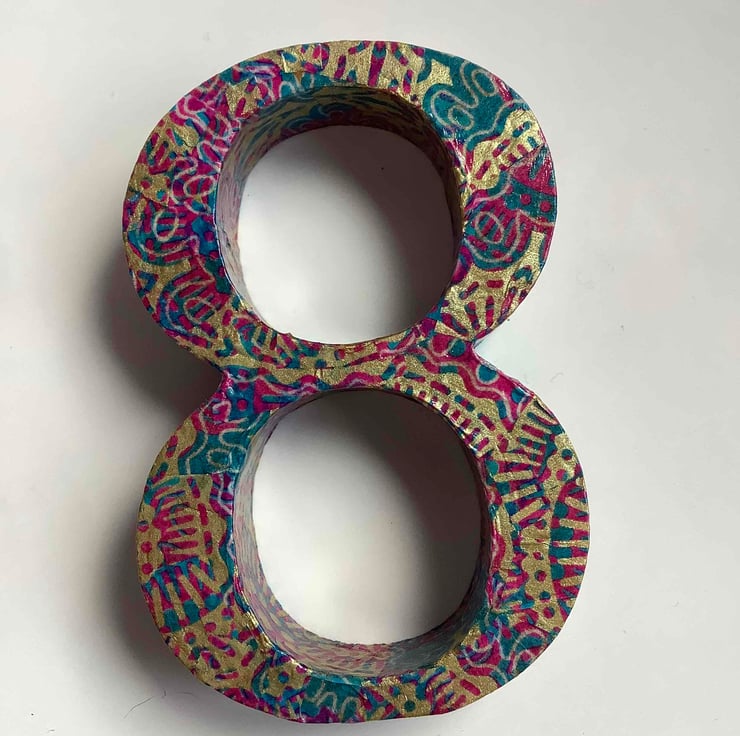 Made of MDF these numbers have been decopatched in an assortment of brightly coloured papers and then varnished.