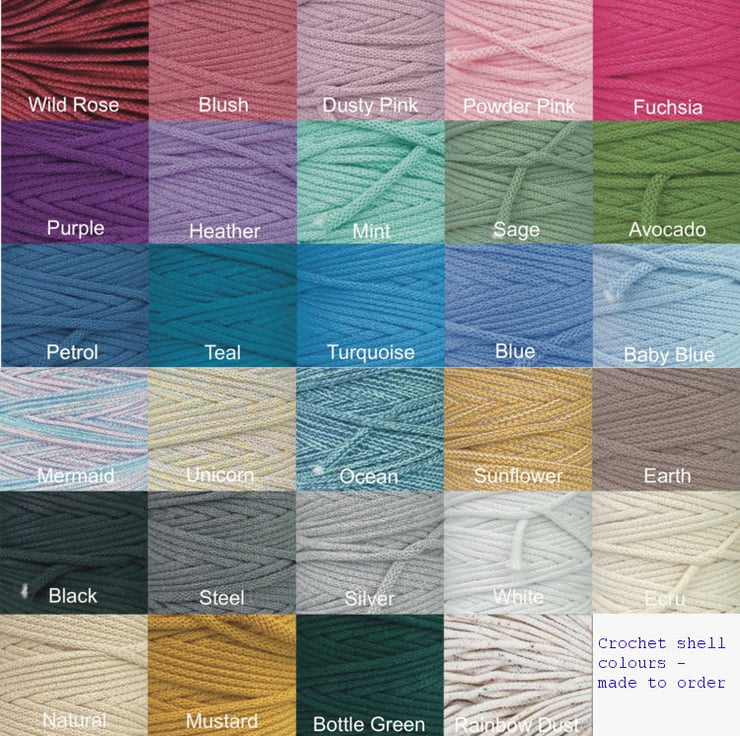 I am happy to make this item in other colours on request. This cotton cord is manufactured in the UK and is available in a wide range of shades, see colour chart in photographs for details.