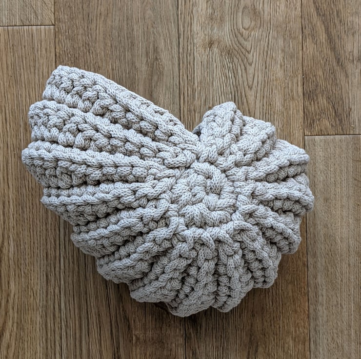 I've become a bit obsessed with crocheting with chunky macrame cord and love making shells and baskets with it. It's hard work crocheting with thick braided cord but the results are worth it. I love how you can clearly see every stitch that went into creating it and it's great to make something in 3D that's not a toy!