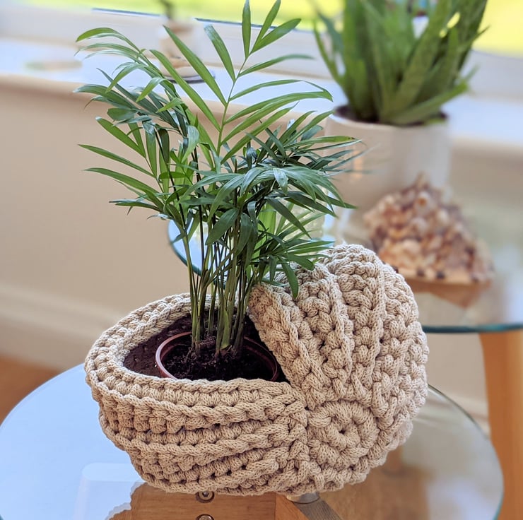 It would look equally good on display by itself as a feature in a room, or as a container for a small houseplant, or as useful storage in the bathroom or nursery. The pattern describes it as an ammonite but it is also the shape of a nautilus shell so would fit in well with a seaside theme.