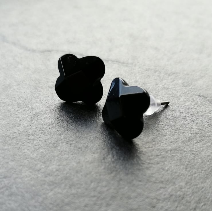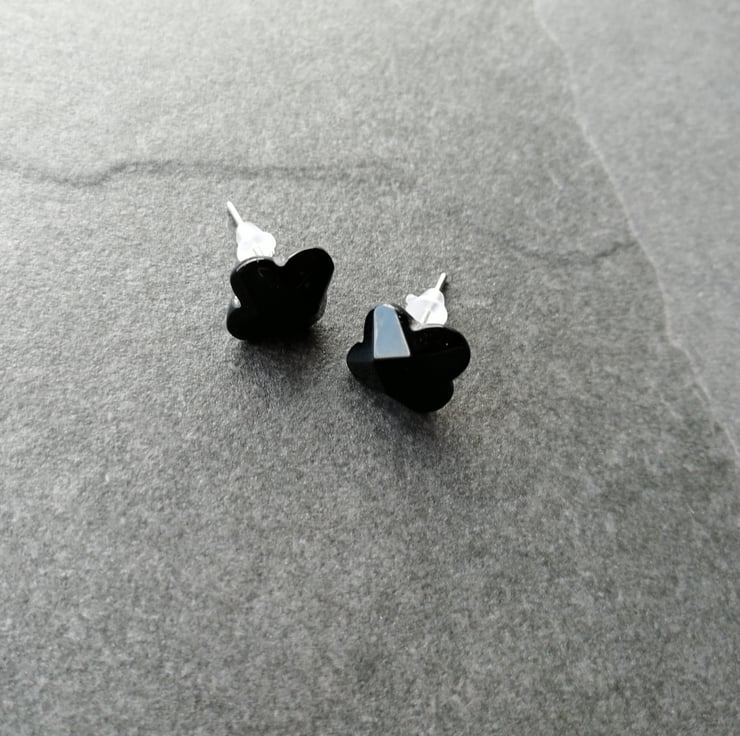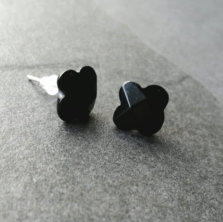 These pretty earrings are made from obsidian. They are on silver plated, hypoallergenic posts and are comfortable enough to wear all day.