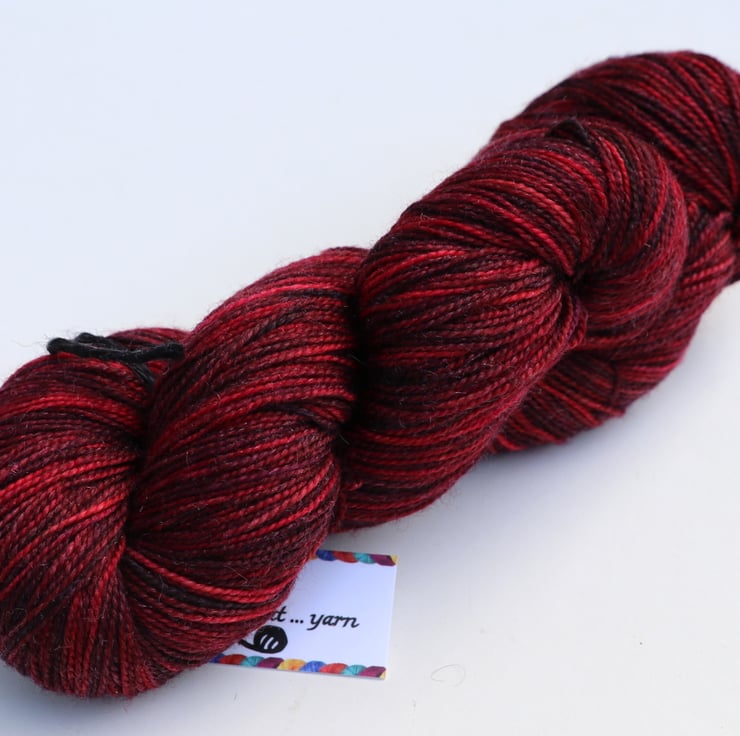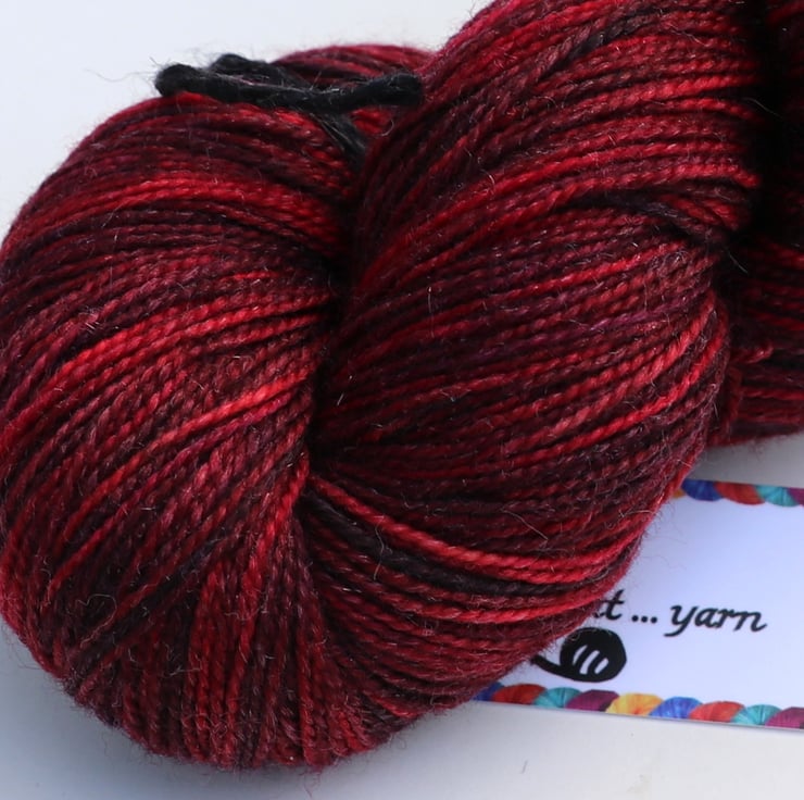 Rich dark rose reds and burgundy with silver stellina sparkle. This is a soft, lustrous 4-ply weight yarn with added stellina sparkles, although this skein is being offered as a slight second at a reduced price because some of the sparkles have dulled slightly (possibly due to exposure to too much heat or acid in the dyeing process). It is still lovely yarn, but the sparkles are simply less sparkly and more subtle. Photographs have been taken and edited in bright natural light.