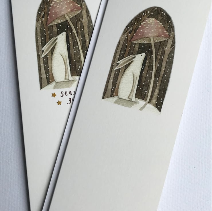 A 80 x 210 card taken from an original artwork by Three Acorns. Suitable for Christmas/Winter birthday, blank inside and supplied with envelope. This card is also blank on front. If you would like a handwritten message and sequin embellishments, please see other listing.