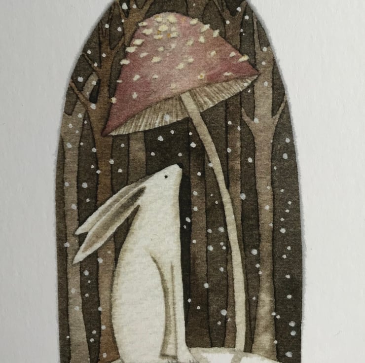 This design was taken from an original watercolour I did after seeing this little guy under a toadstool in the woods. Or at least I think I did……