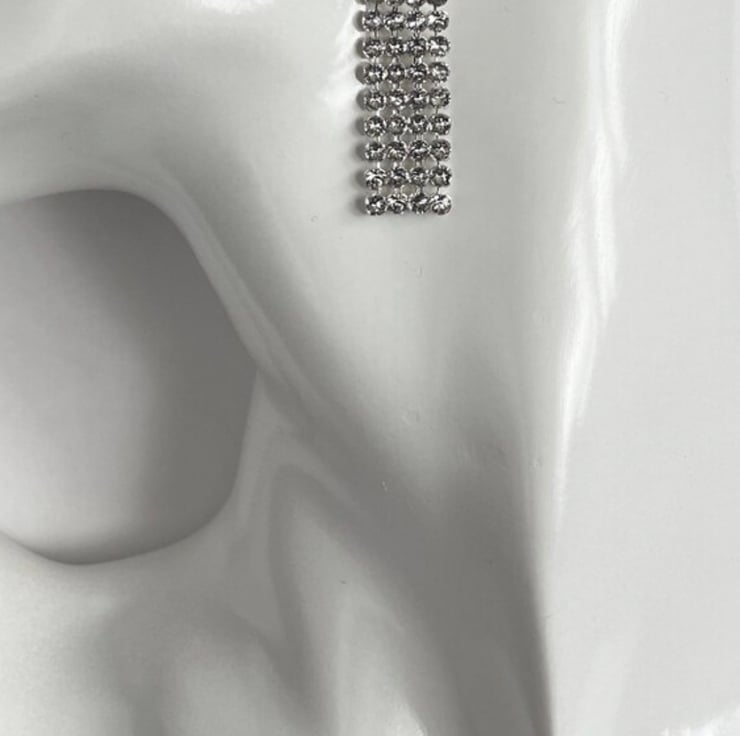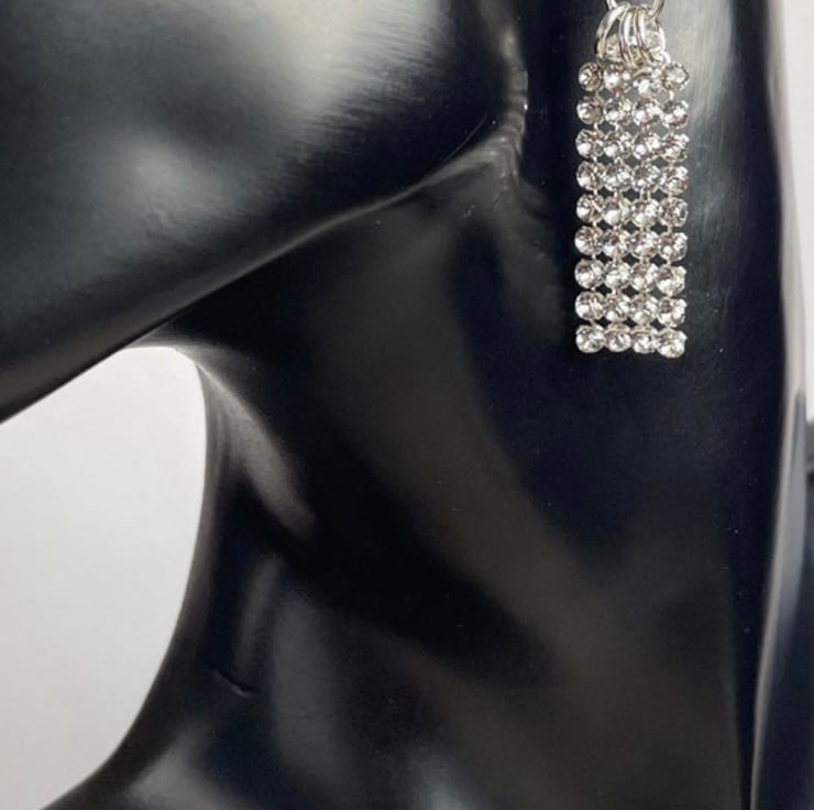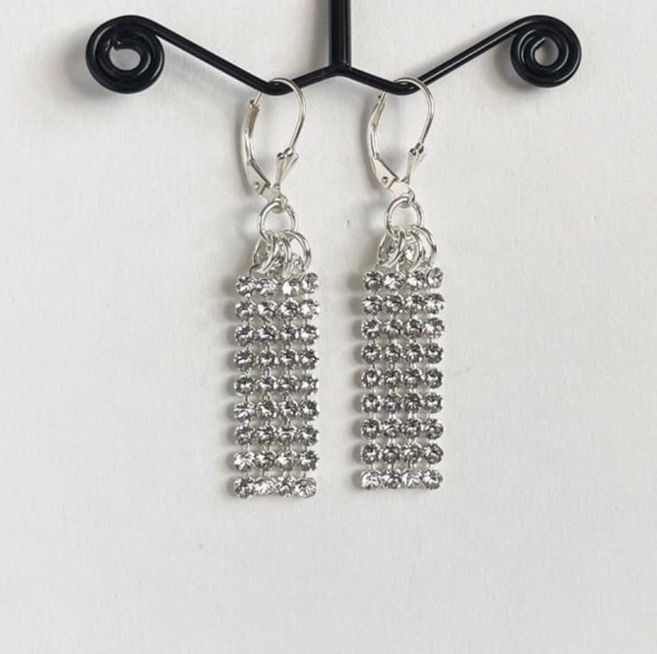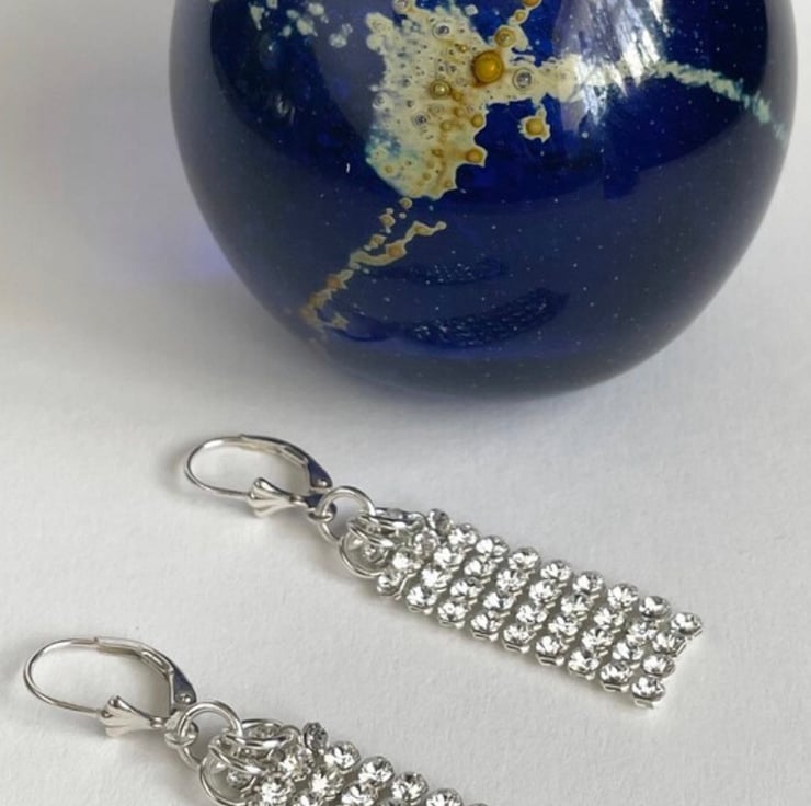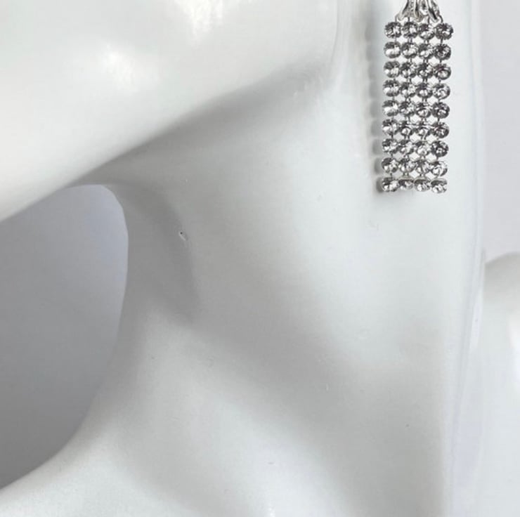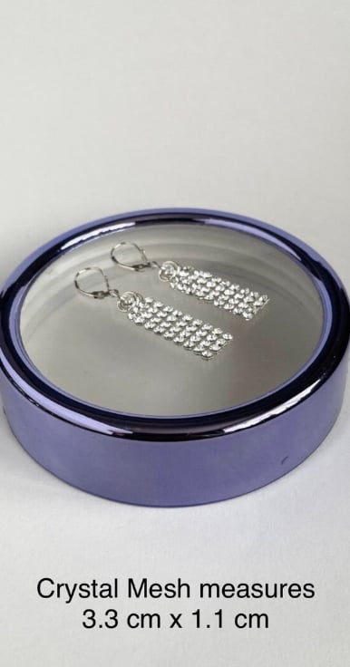 The Crystal mesh is a conversational piece on it own, but with sterling silver lever backs and sterling silver rings, the sparkling crystals instantly capture the light, resulting in a cascade of bright individual crystal sparkle and diaphanity.