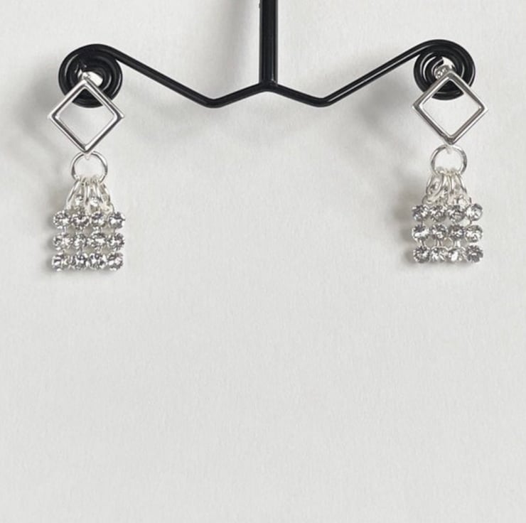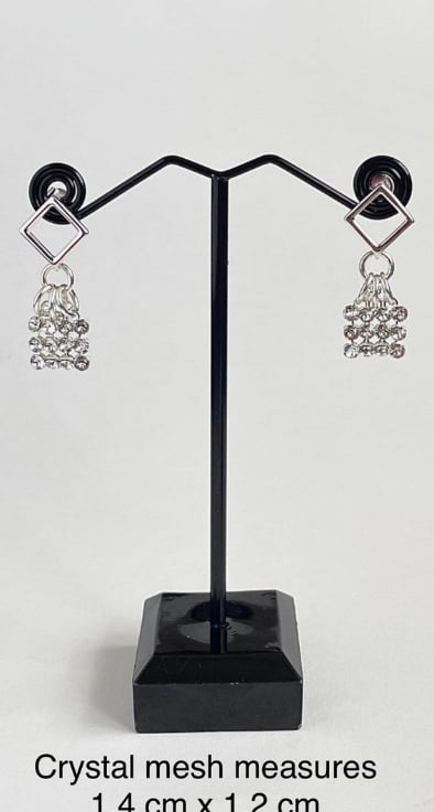 Sterling Silver Crystal mesh earrings with diamond shaped earring posts.
