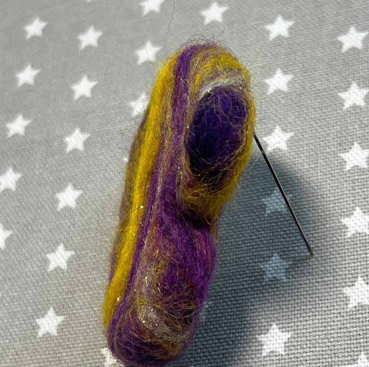 This gorgeous wool reminds me of autumnal days. You never know what you are going to get when needle felting a beautiful blend like this, and this brooch looks like a very dramatic sunset ... well that’s what I can see anyway x