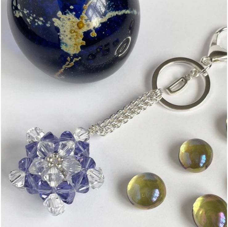 Handbag Charm, Purple & Clear Crystal Star with a Chainmaille Chain and Keyring