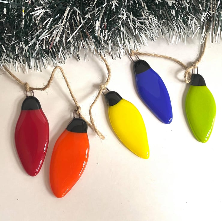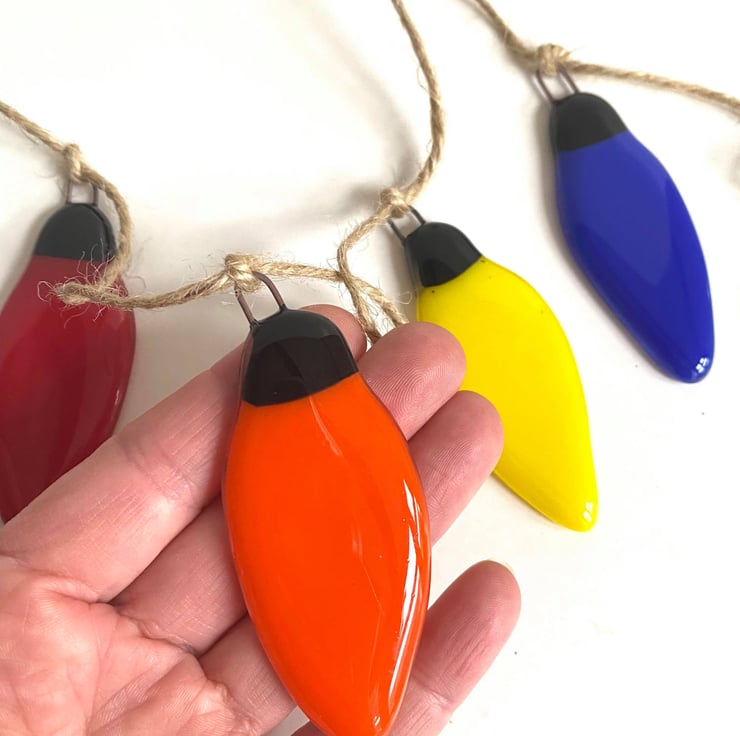 Fused Glass Christmas Light Bulb Bunting Hanging Decoration