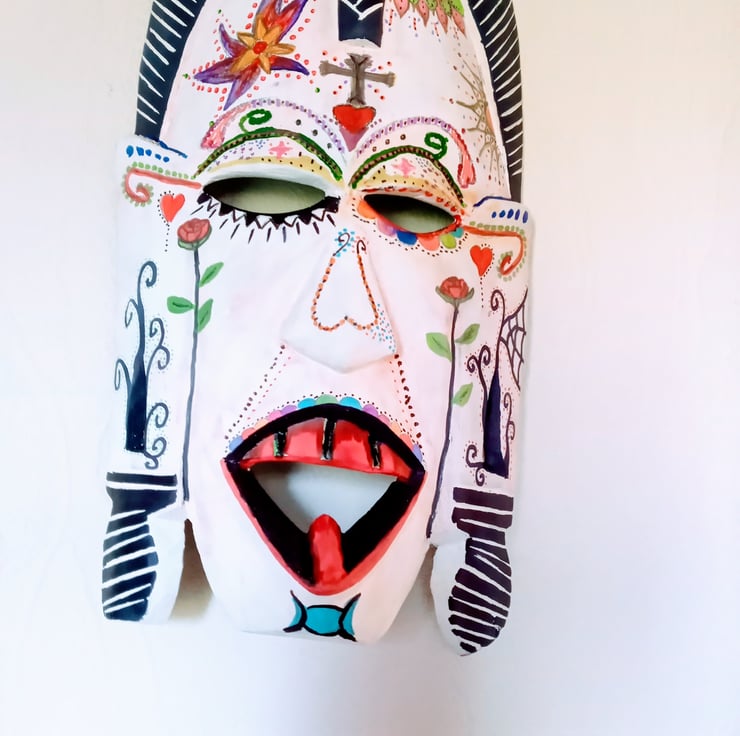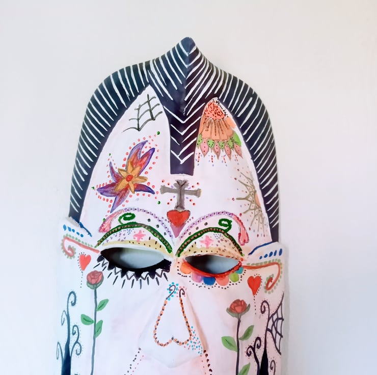 This hand carved tribal mask looked really boring so I gave it the up lift it needed ... my fella hates it .. lol ... I love it