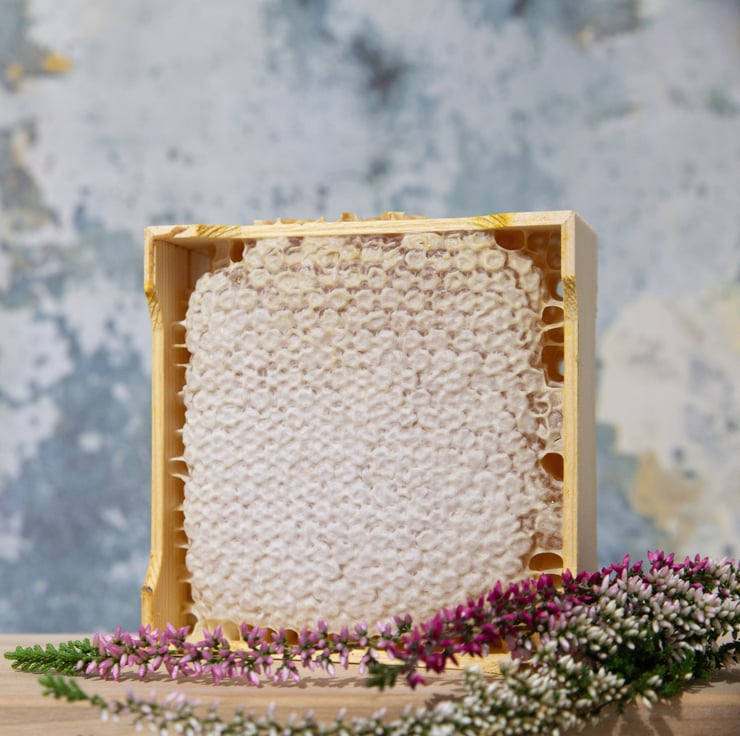A honey classified as a "Superfood". 10 times more Manganese than any other honey! Honey in its purest form. Raw, natural, and unprocessed Scottish Heather Honeycomb.