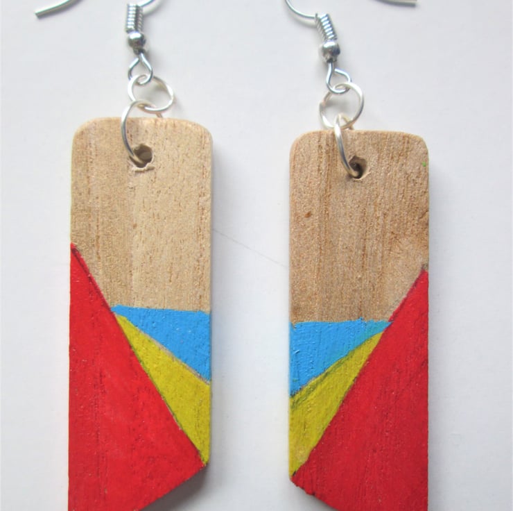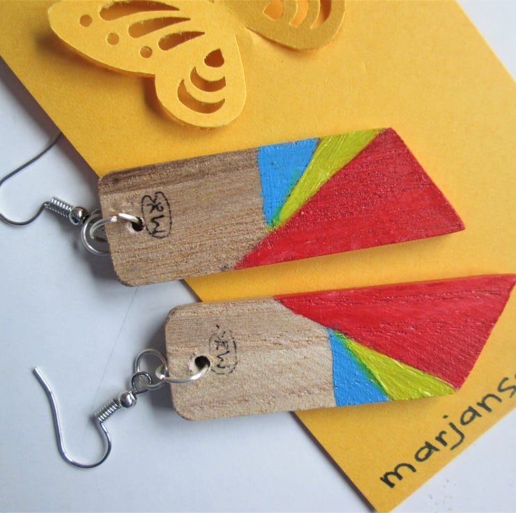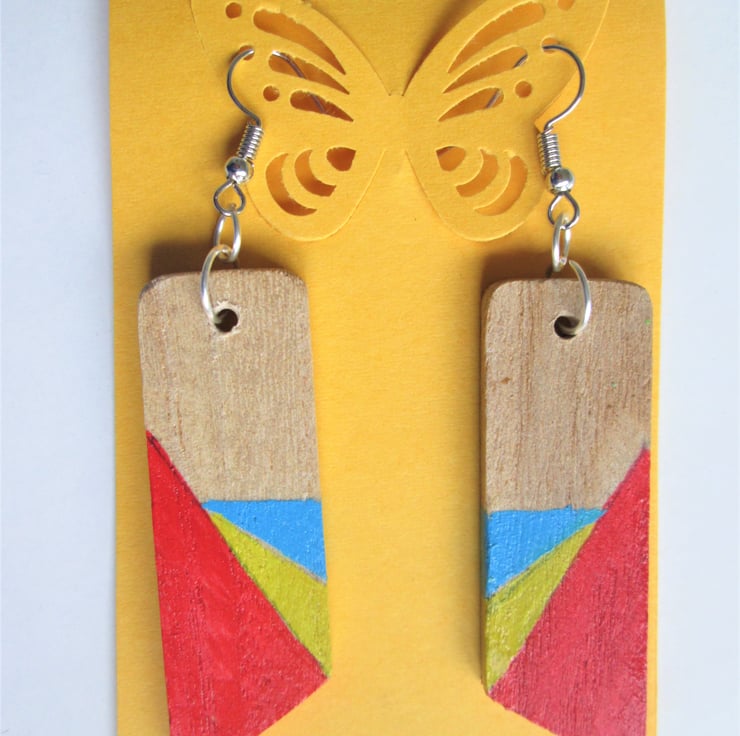 A lovely set of earrings ready for her. A lovely art-deco style painted on pieces of wood..