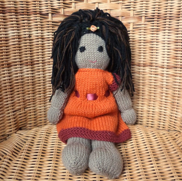 i made the first of these dolls for my granddaughter, then I got some orders as they are so adorable and soft. Lovely soft wool body and dress, and wool blend hair. Really cosy and cuddly. I love creating them and I have lots of beautiful different colours for their dresses
